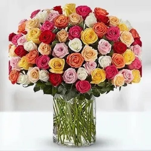 Capture love and joy with a vibrant vase of 80 mixed roses, expressing your affection. From classic red to delicate pink and vibrant yellow, the diverse colors symbolize the depth of your love. Picture the delight on their face as they receive this heartfelt gift—a cherished reminder of your enduring support and admiration.